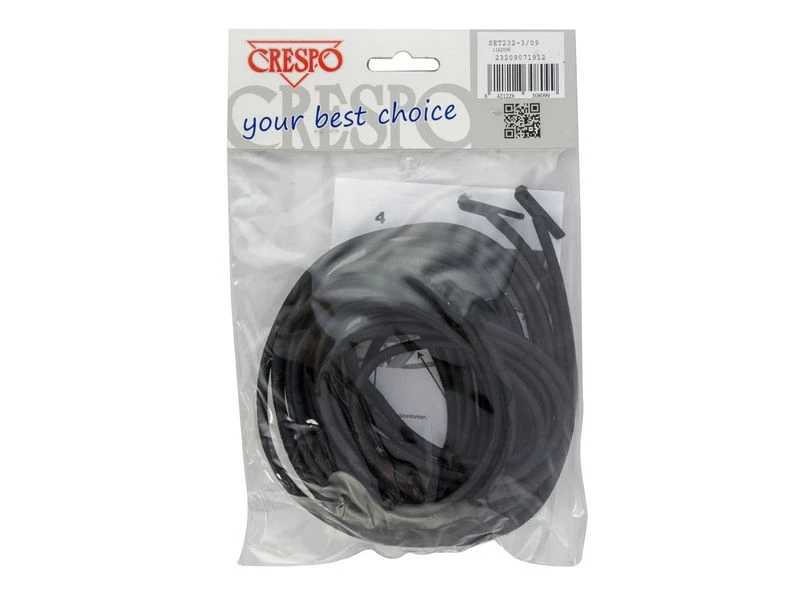 Een set voor het vervangen van elastieken van een Crespo relaxstoel. Eenvoudig te vervangen. Een set bestaat uit 2x een lang elastiek en 2x een kort elastiek. Voorzien van eindstukjes, zodat het elastiek zich vast zet.