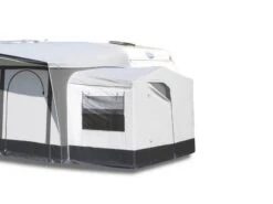 door het vrijstaande frame is het niet nodig tentogen op uw caravan te monteren