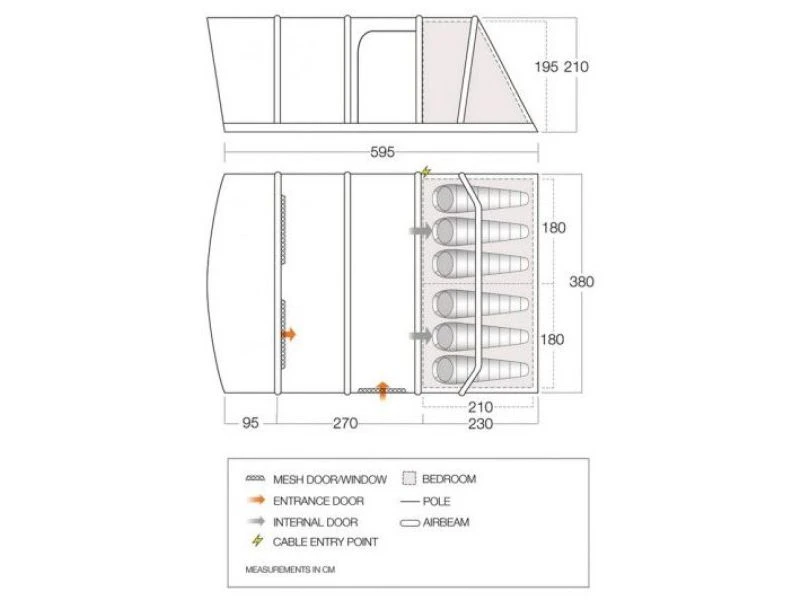 De airbeams in een Vango AirBeam tent zin van een sterke en rigide structuur zodat u deze tent snel en gemakkelijk kunt opzetten.